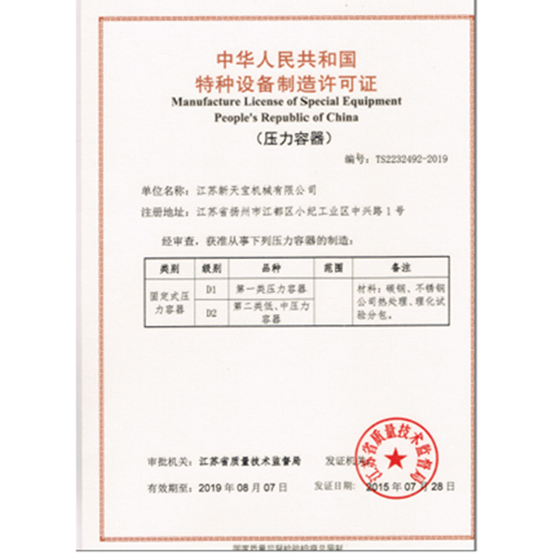 特種設(shè)備制造許可證