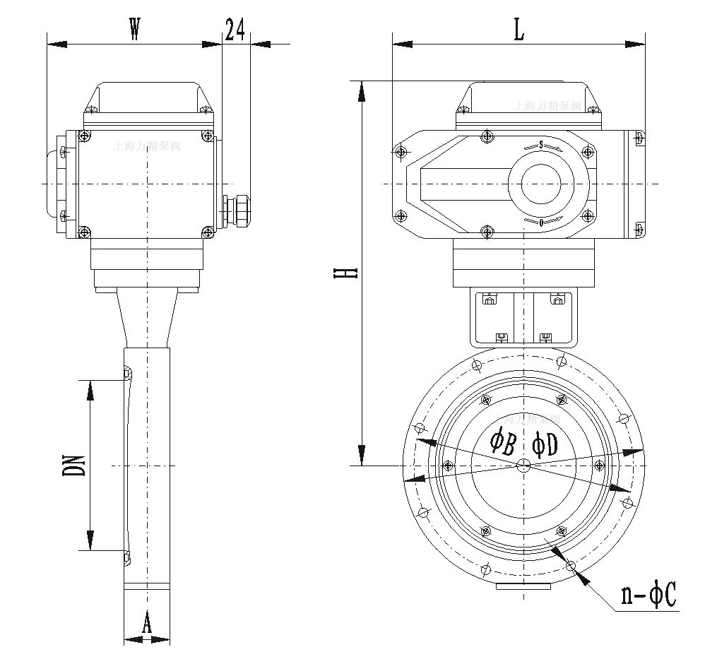 二、CID-A系列電動(dòng)高真空碟閥的尺寸圖: